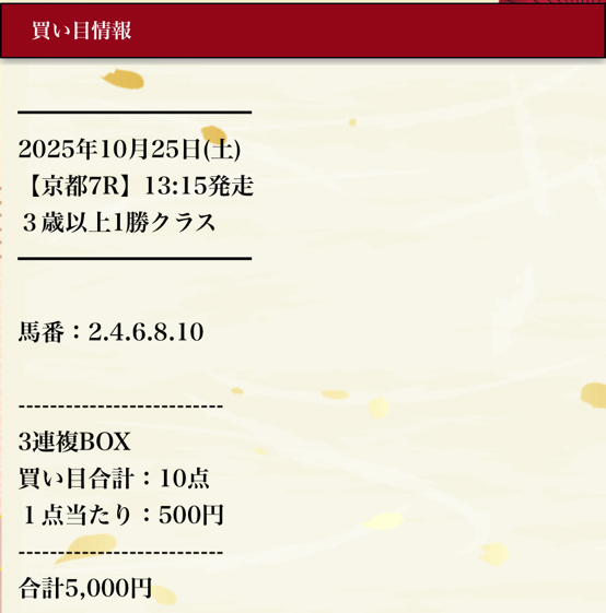 馬券代は1点500円の総額5000円