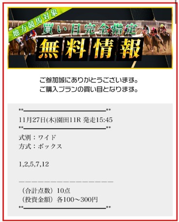 3日(火)の地方競馬無料予想の馬券を買い目通りに購入