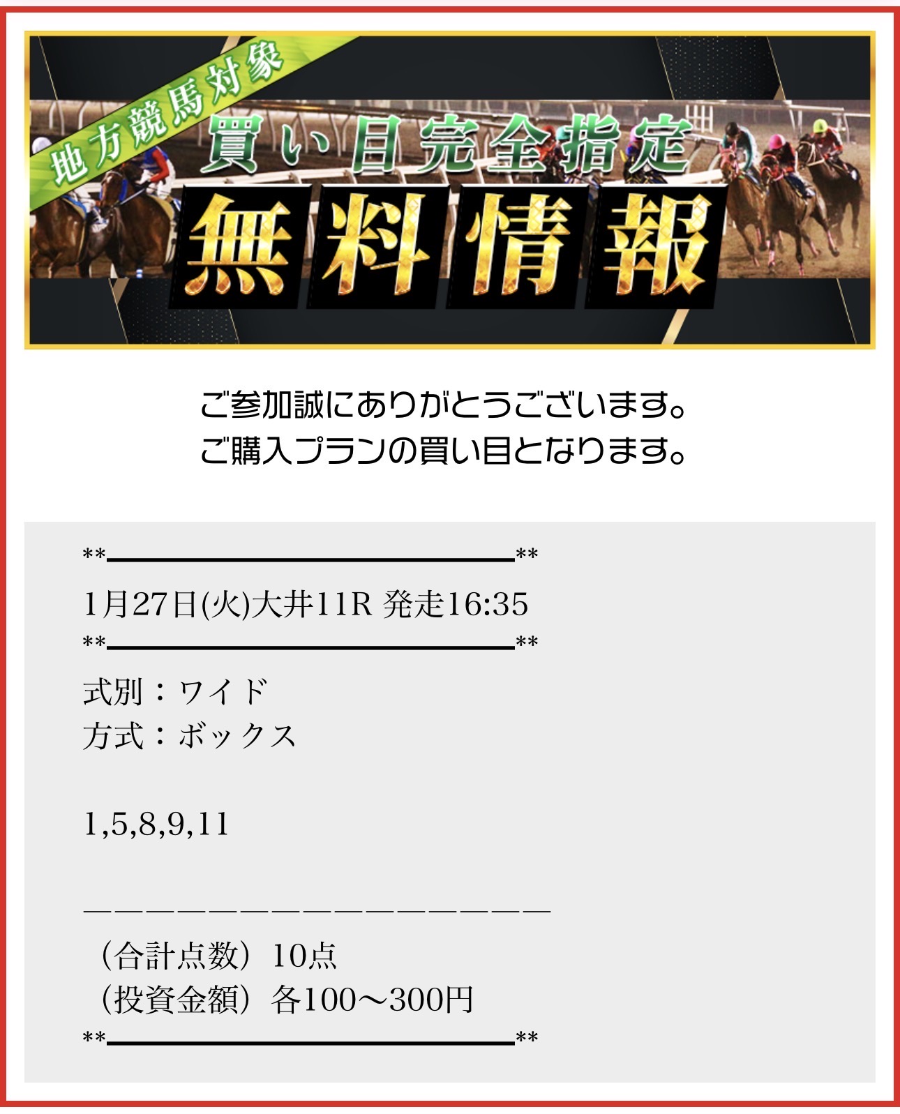 27日(火)の地方無料予想で