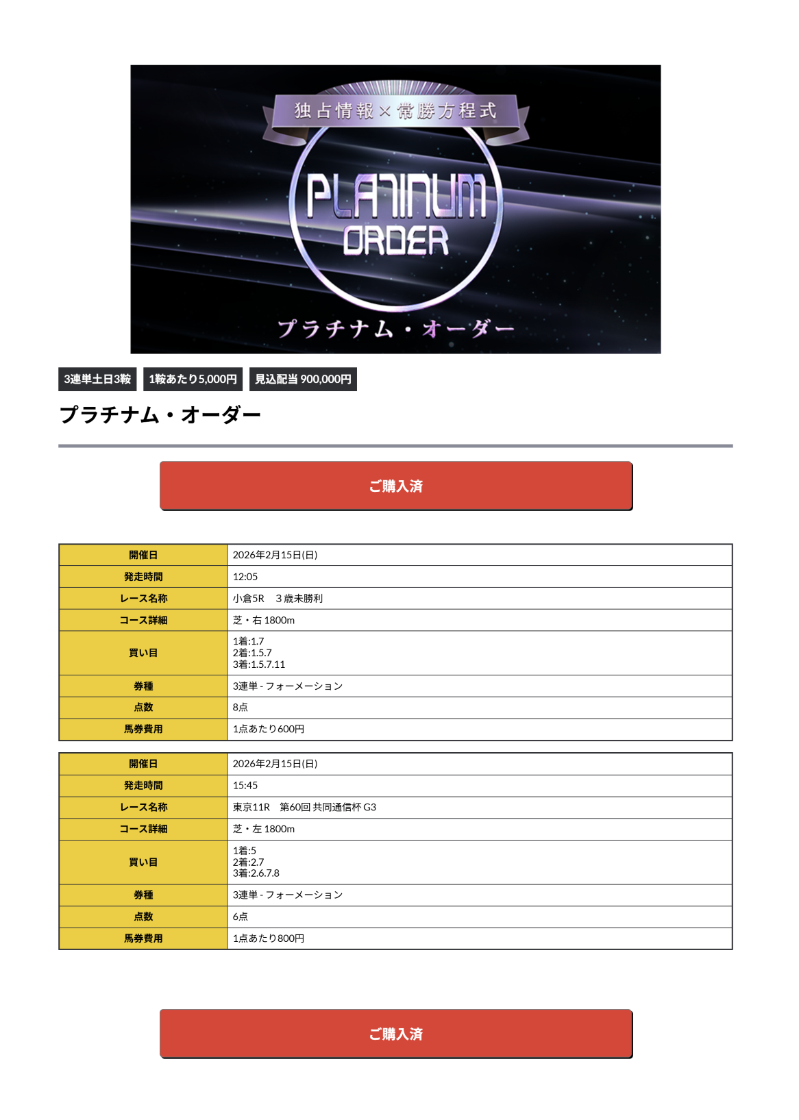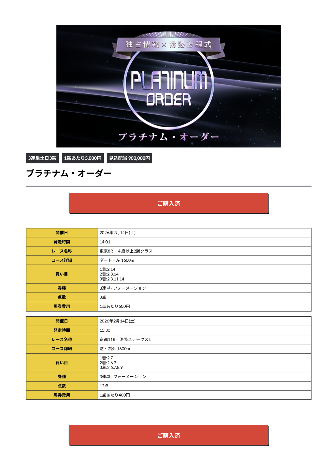 同じ情報を14日(土)15日(日)購入した結果を報告します。